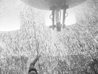 A bevágás oldalából kilenc helyen tört fel a víz és folyós péppé változtatta a talajt. A vízzel elárasztott szakaszon hosszú “csápokat”, lyuggatott végű vastag csöveket süllyesztettek a földbe és most ezek a csápok szívják fel a talajvizet. Az iszapos homokliszt kiemelése és elszállítása nagy nehézséggel jár, lapáttal, vederrel merítik ki és rakják vagonokba. Ezt a munkát nem lehet gépesíteni, mert a kotró súlyát nem bírja ki a talaj. Egy alkalommal, amikor a kotrógép egy nagyobb felszín alatti vízér fölött dolgozott, talajtörés állt be és a gép néhány perc alatt két métert süllyedt.