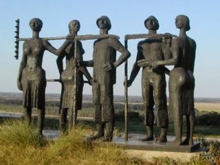 Csend van. Nyoma sincs már az éjfél utáni vidám forgatagnak; itt-ott elhajított papírtrombita, színes szalagok, üres üveg is akad. Nagy pelyhekben hull a hó, hajnali sötétség borul a városra, bár már nyolc óra körül van az idő. A házak ablakai sötéten bámulnak az utcára, csak elvétve szűrődik ki fény valahonnan. Alszik a város; senki, semmi nem mozdul. Ekkor jelennek meg a színen Ők. Négy férfi és ugyanannyi nő tart – gondolom – hazafelé, összetartoznak, bár egy idő után a hölgyek szemmel láthatóan nem vállalják párjukat és előremennek, mivel a férjek kórusa hangos éneklésbe (óbégatásba) kezd, mitsem törődve az alvókkal és a bosszankodó hölgy koszorúval. Rekedten igyekeznek eltalálni a megfelelő hangot, nem adják föl egészen a Lenin térig. Itt aztán érzékeny búcsúzkodás után elválnak, ki-ki folytatja útját párjával az oldalán hazafelé.