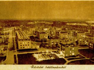 “Eljött a nagy nap, május elseje. A Május 1. utcában felállított tribün közelében, az úttesten már felsorakoztak az új szocialista város jelképei, élőképszerűen. A kohászok, martinászok, olvasztárok, öntők, kőművesek egy-egy képviselője teljes harci díszben várják, hogy kezdődjön a menet…”