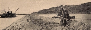 8. Az ipari építkezések területét keskeny és normál nyomtávú vasutak szelik keresztül-kasul, ezek legtöbbje azonban csupán ideiglenes jellegűnek tűnik. A homok és kavics közúton érkezik a folyóparttól, ahol az uszályokat az ideiglenes kikötőben rakodják ki. A folyó mentén lejjebb található a szűrő- és szivattyú állomás, amelynek feladata, hogy a Duna vizét a fölötte épült városba továbbítsa. A végleges kikötő építése pedig a jelenlegitől északabbra folyik.