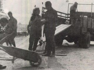 Aztán megjelentek a teherautók, emberek jöttek, gépeket hoztak, szerszámokat, cementet, téglát, vasat, deszkát, cserepet, villanyoszlopokat. Az emberek barakkokat építettek, kutat fúrtak, gödröket ástak, betont öntötek. Mérnökök mérték ki mindennek a helyét, vörös zászlócskák, földbevert oszlopok jelezték a földeken végig: itt épül az új város, a szocialista város.