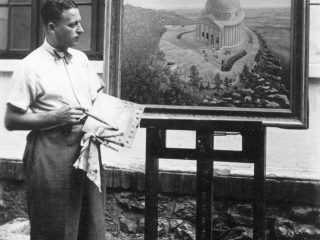 Domanovszky Endre kétszeres Kossuth- és Munkácsy-díjas festő, érdemes és kiváló művész otthonában, 1965 áprilisában