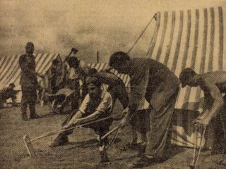 Az üres sátortábor néhány perc alatt megtelik. Hamarosan elhelyezkednek a fiatalok. Szalmazsákot, lepedőt, pokrócot, kék munkaruhát, tányérokat, poharakat kapnak, otthonosan berendezik a sátrat.