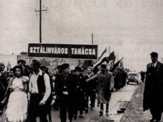 “A SZTÁLINVÁROSI KÖZÉRT ELŐTT” Ez a címe Kass János rajzának