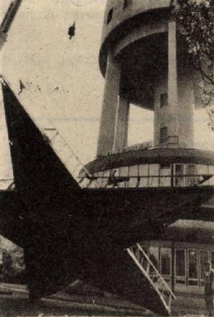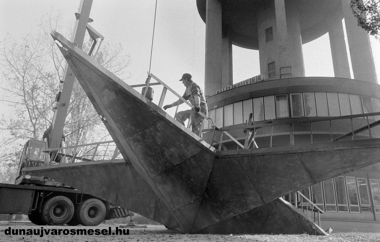 A 10 méter magas, egy tonnás szerkezetet 40 méter magasságból hozták le a földre. /1989. október 20.
