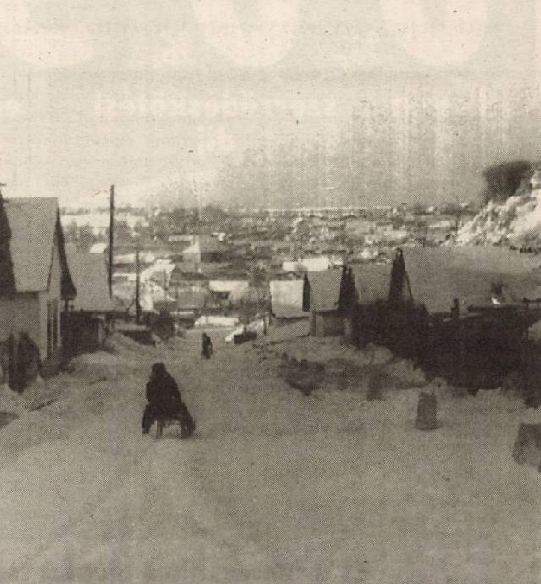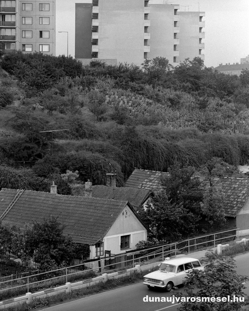 Aranyvölgy egykori házai az új, panelházak tövében /1973