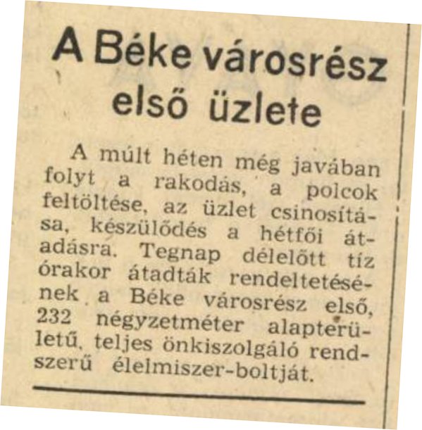 Költöznek a lakók. A hétfői, keddi kulcsátadást követően ezekben a napokban kétszáztizenegy család költözik új, modern otthonba a szülői házban eltöltött, vagy albérletben kiböjtölt évek után. Jönnek tehertaxival, Volántól, téesztől, saját vállalattól bérelt tehergépkocsikkal és hozzák magukkal megszokott ingóságaikat. Vidáman zengő hórukktól hangos a Béke városzrész…
