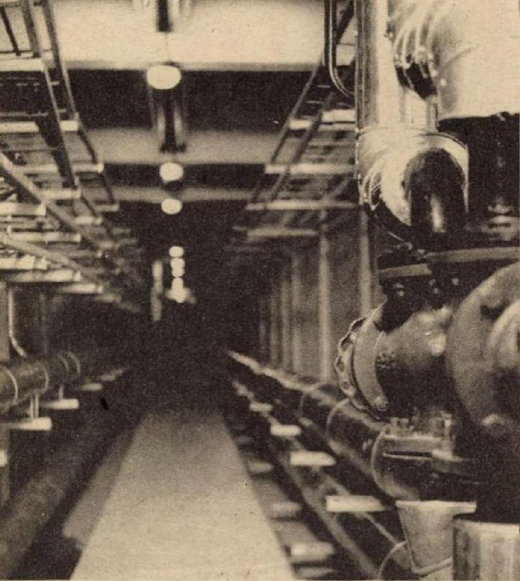 Alagútban, tartó konzolokon futnak a különböző vezetékek. A tervezők a jövőre gondolva hagytak helyet ma még nemhasználatos vezetékeknek