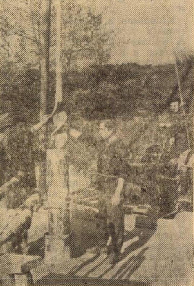 Második képünkön az ÉM Csatorna és Vízvezetéképítő Vállalat dolgozói láthatók, Szemes Ferenc fúrómester és brigádja próbafúrást végez.