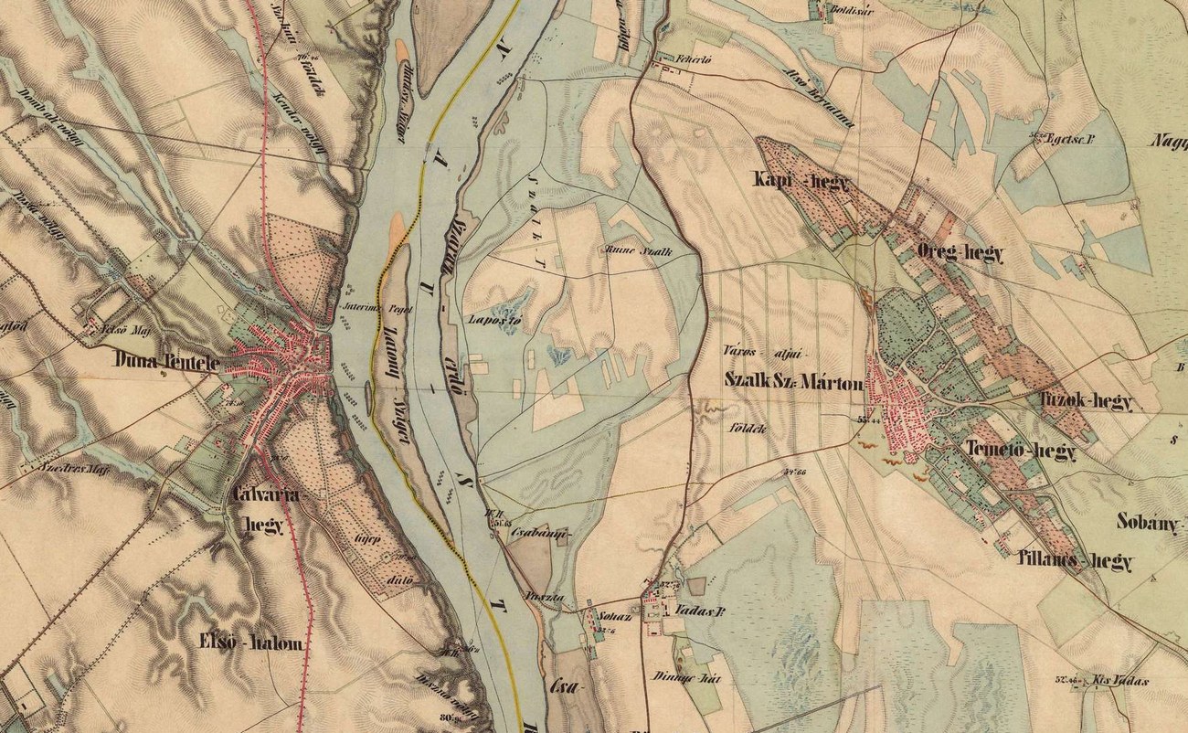 Régebben az adonyi és a rácalmási szigetek egyek voltak a szárazfölddel. Ékes bizonyíték erre Vetus Salina (Adony) római castruma, melynek mára csak egy kis csücske maradt. Ha egy pillantást vetünk a Makád község körüli terület katonai térképére, megdöbbent bennünket annak a kavarodásnak a látható nyoma, mellyel telítve van a község körüli terület. Megérthetjük, hogy a Duna – beleütközve a Szent Mihály dombba – valóban balra vehette az irányát, visszahagyva maga után a sok, egymással párhuzamos vízmosás és meder nyomát. Ugyanilyen, de már ÉK-DNy irányú medrek nyomai láthatók a rácalmási Nagy szigeten is, nyilván a Duna munkájának eredményeként. Ismét felvethetjük: vajon mikor volt?