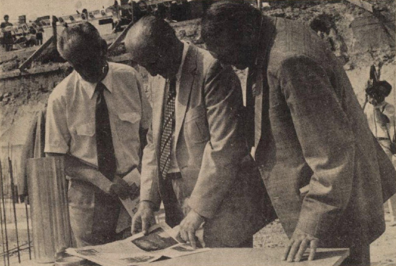 Miután dr. Szlameniczky István, az MSZMP KB tagja, a SZÖVOSZ elnöke, Takács Imre, az MSZMP KEB tagja, a Fejér megyei pártbizottság első titkára, Závodi Imre, az MSZMP KB tagja, a Fejér megyei tanács elnöke, Gadanecz György, a városi pártbizottság első titkára, Kovács György, a MESZÖV elnöke, Sárosi József, a városi tanács elnöke és Szabó Gyula, a munkásszövetkezet elnöke aláírták az emlékokmányt, az ünnepi igazgatósági ülés résztvevői az építkezés helyszínére mentek. Ott dr. Szlameniczky István elhelyezte az előkészített fémurnába az emlékokmány egy példányát, a Népszabadság, a Fejér megyei Hírlap és a Dunaújvárosi Hírlap aznapi számát, a magyar űrhajósok fényképét, s a forgalomban levő pénzérméket, majd mielőtt az urnát az alapfalba helyezte, többek közt a következőket mondotta: