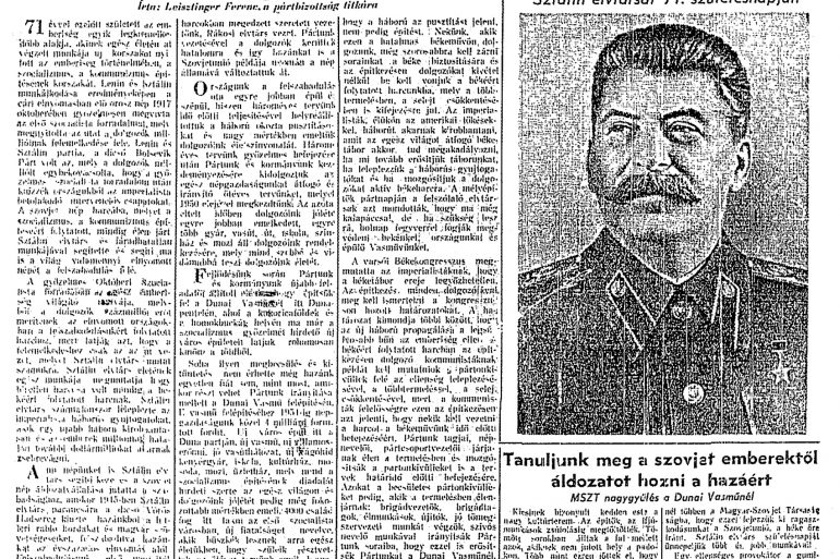 A “Dunai Vasmű Építője” – a dunapentelei építkezés lapja December 21-én, Sztálin elvtárs 71. születésnapján jelent meg a “Dunai Vasmű...