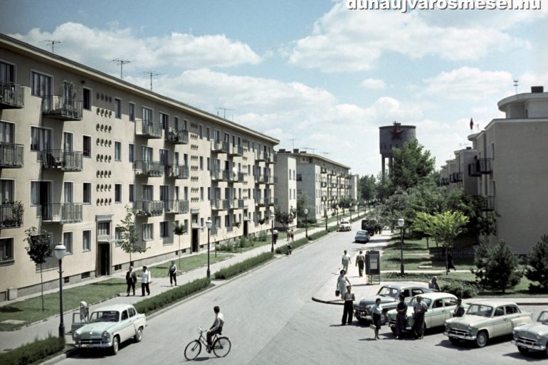 Magyar Nemzet – 1960. január 12. A tanuló, művelődő Sztálinváros Május 1. utca, háttérben a víztorony /1960 fotó: MTI/Vadas Ernő...