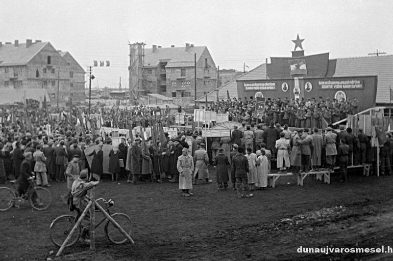 Szabad Ifjúság – 1951. november 4. Dunapentele 1951. június 28. fotó: MTI/Kotnyek Antal Dunapentele építői új munkagyőzelmekkel köszöntik a minisztertanács...