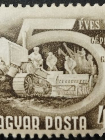 Dunaújvárosi Hírlap – 1974. december 10. Születés előtt “Ötéves tervünk: béketerv” Levélbélyeg. Nagy hasú ötös számjegy alól traktorok, teherautók, földmarók...