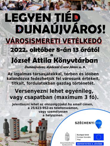 Az Országos Könyvtári Napok keretén belül október 8-án 13 órától várostörténeti vetélkedőre várjuk az érdeklődőket a József Attila Könyvtárba. A...
