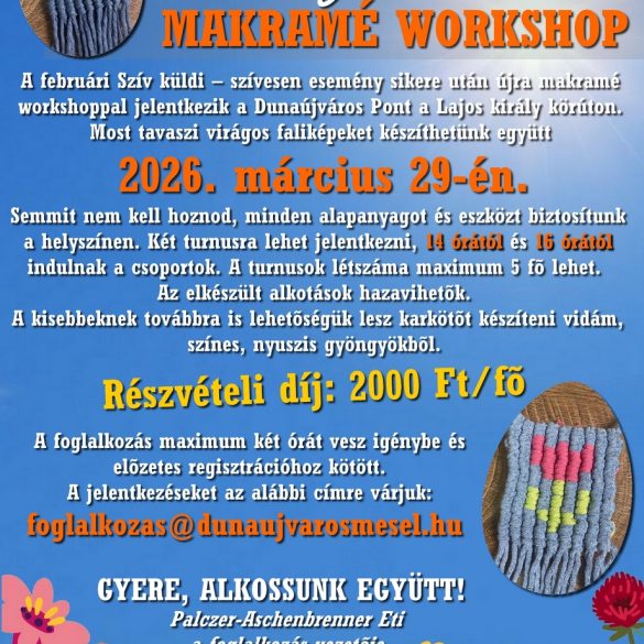 Újra makramé foglalkozásra várjuk az érdeklődőket vasárnap délután 2 órától. Ha épp nincs más programotok, és nem riaszt el titeket...