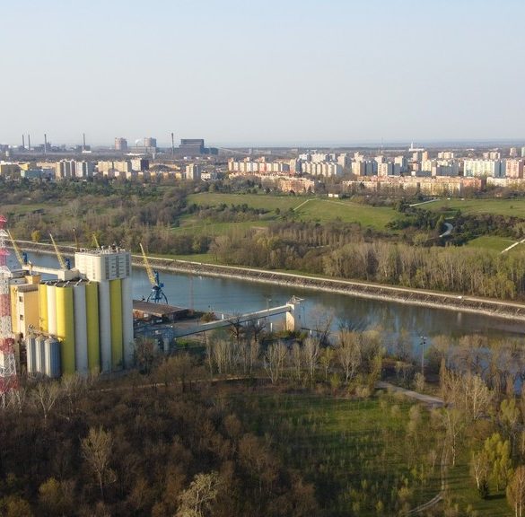 7közlap – 2001. április 3. Festői Duna-partunk és a Kikötői-öböl a város alatt 2020 áprilisában Fotó: Horváth Tamás Tanulmányterv a...