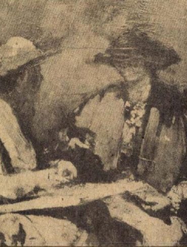 Szabad Ifjúság – 1955. szeptember 6. Hogyan készül a freskó? Vasmű főbejárata Domanovszky freskójával díszítve fotó: Corvina kiadó – Sztálinváros...