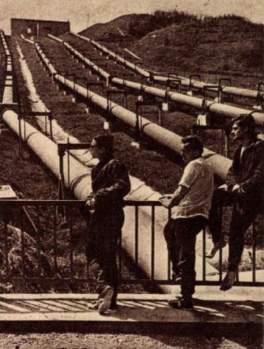 Sztálinvárosi Hírlap – 1957. augusztus 13. A “Duna” tengerjáró hajó a sztálinvárosi kikötőben Szombaton délelőtt szokatlanul nagy hajó verte fel...