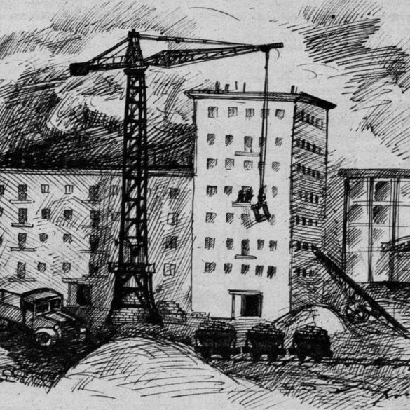 Népszava – 1952. február 29. Georgij Mihajlovics Orlov elvtárs Sztálinvárosban Egymással szemközt áll G. M. Orlov Sztálin-dijas építőművész és Korda...