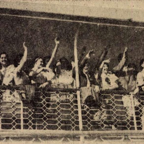 Szabad Ifjúság – 1955. szeptember 6. Hogyan készül a freskó? Vasmű főbejárata Domanovszky freskójával díszítve fotó: Corvina kiadó – Sztálinváros...