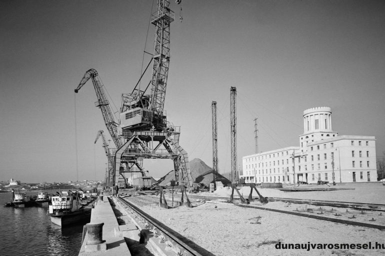 Sztálinvárosi kikötő /1956 Fotó: MTI/Seidner Zoltán Szászy Sándor: Sztálinvárosi kikötőben Gránit mólón állok és csodálom A folyóparti acél várost, Melynek...